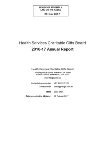 Health Services Charitable Gifts Board – Annual Report 2016-2017-tabled